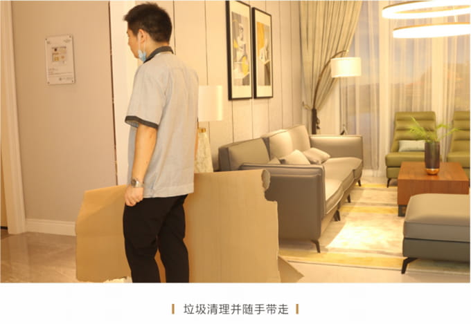 产品处理完毕后必须一站式通检,指导客户使用,并将服务过程中产生的垃圾随手带走,家具维修完毕后,应用毛巾将家具擦拭一遍,确保产品清洁。